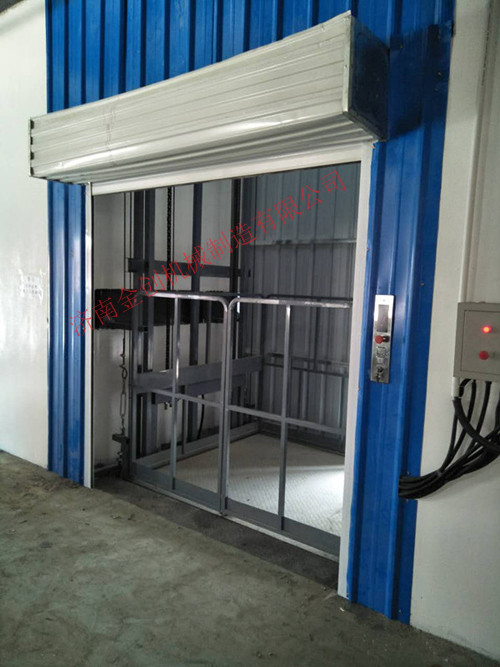 這臺在天津安裝完成的升高6米,載重3噸的鏈條導軌式液壓升降貨梯,采用電動卷簾門聯動控制,彩鋼板外封結構,結構堅固,承載量大,升降平穩,安裝維護簡單方便,是經濟實用的低樓層間替代電梯的理想貨物輸送設備.常常用于二三層工業廠房,餐廳,酒樓樓層間的貨物傳輸。鏈條式液壓升降貨梯最低高度在150-300mm,尤其適合不能開挖地坑的工作場所.